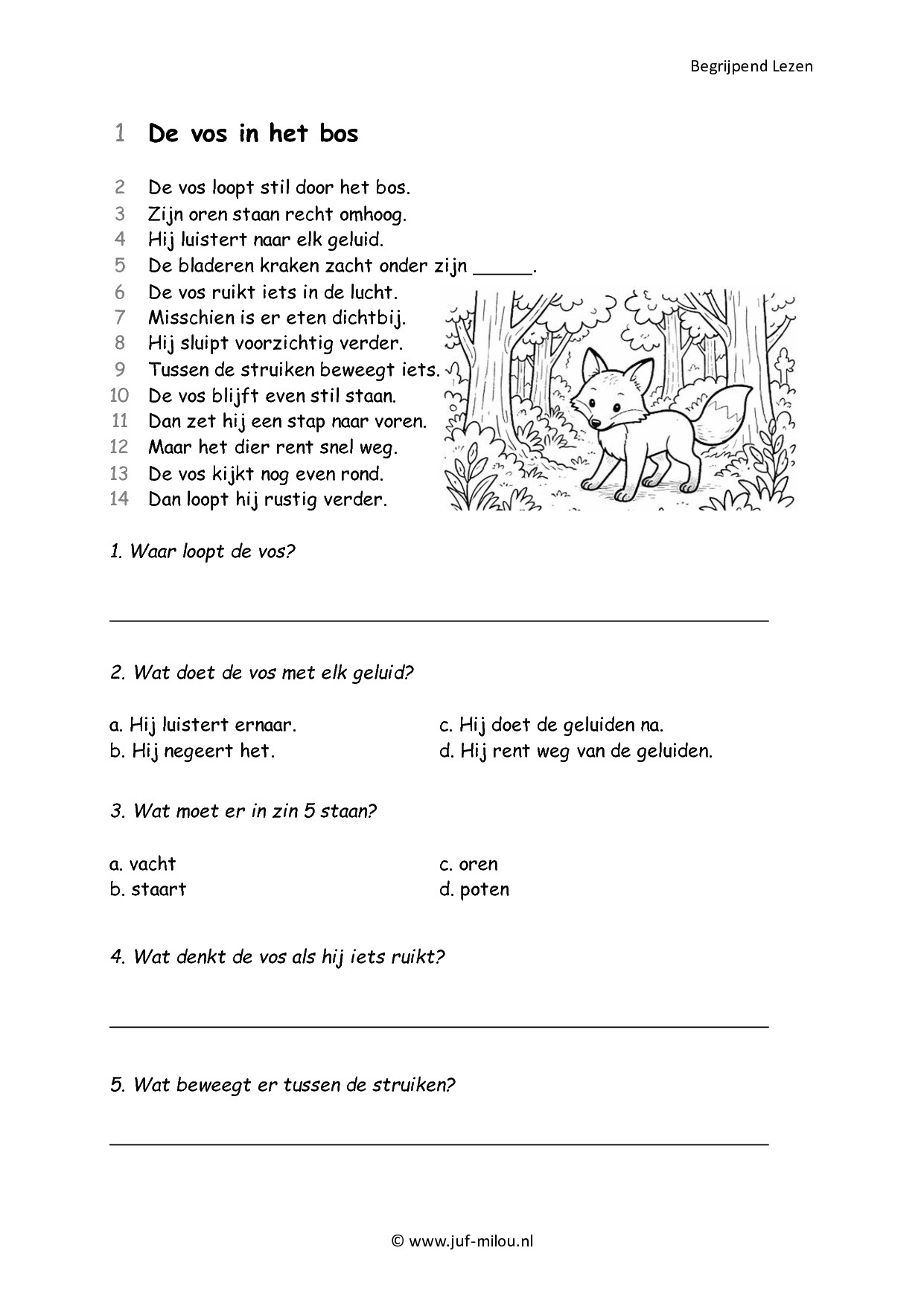 Deze download bevat 12 begrijpend lezen werkbladen (inclusief antwoordbladen) in het thema bosdieren: