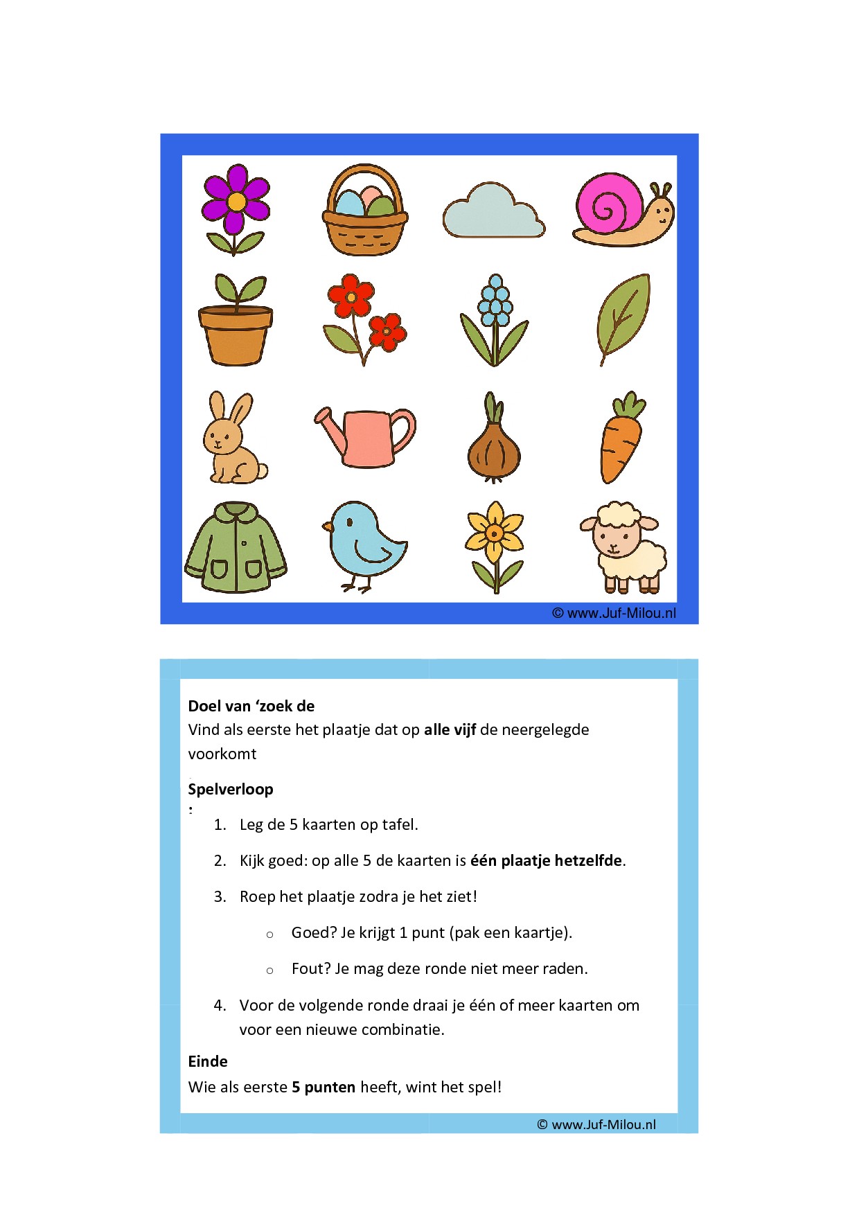 In deze download zitten 5 spelletjes met plaatjes in het thema lente: