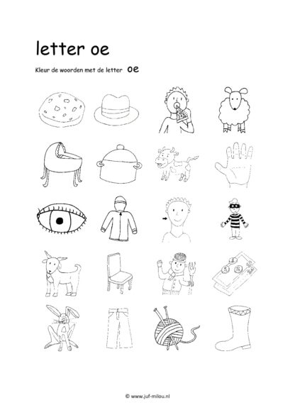 In dit downloadbestand zitten 17 werkbladen (+ gratis 5 werkbladen in kleur) van letter oe,  de inhoud kun je bekijken op : bekijk