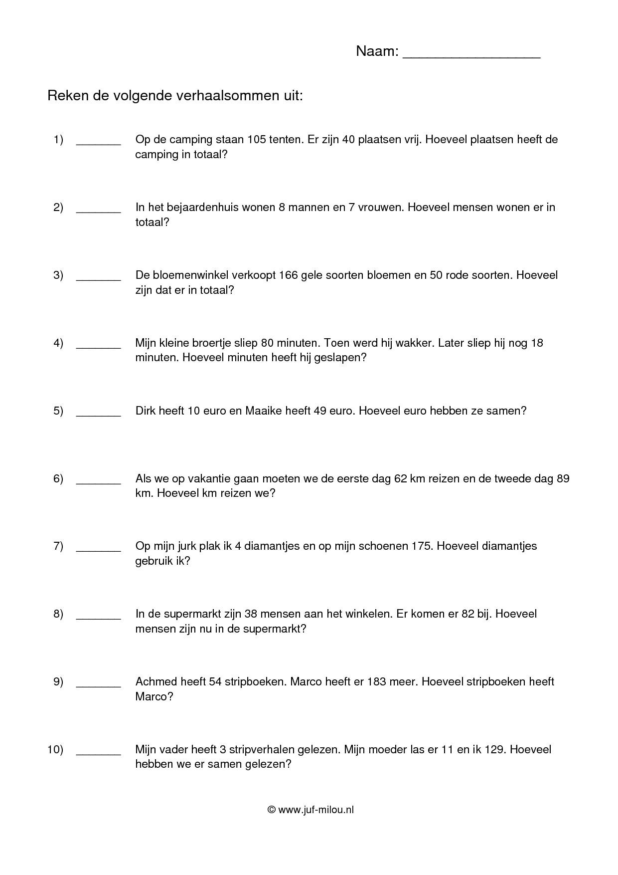10 werkbladen met redactiesommen met 10 opdrachten per werkblad en inclusief antwoordbladen.
