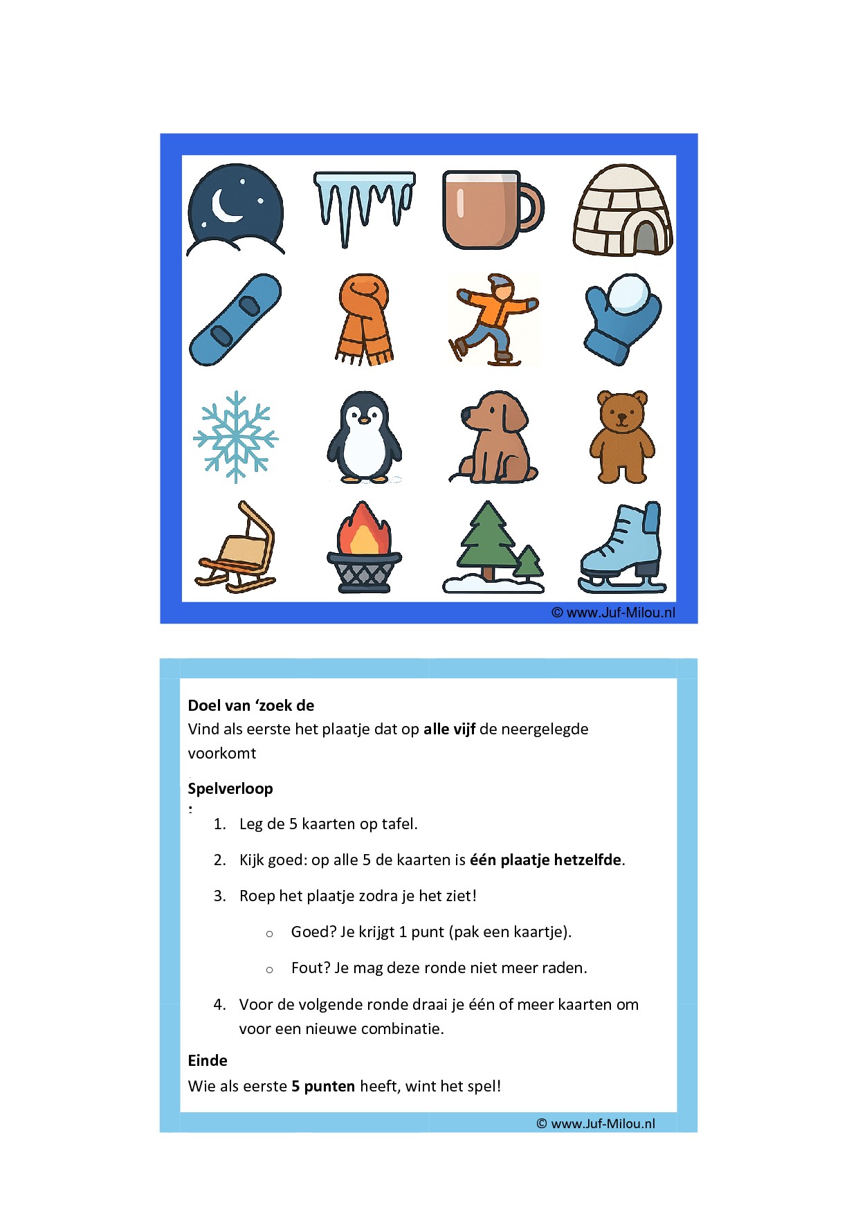 In deze download zitten 5 spelletjes met plaatjes in het thema winter: